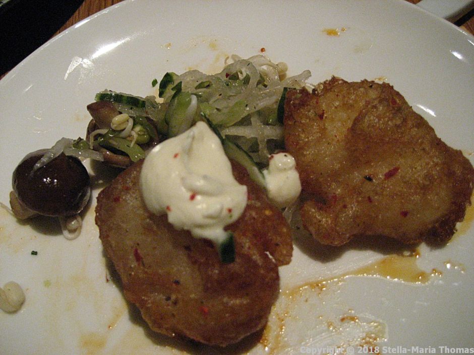 Next up was the seafood tempura and pickled salad dish, which includes the crispy tempura of the day, in this instance scallops, with some lightly pickled vegetables made in house, a Japanese aojiso dressing, and a dollop of yuzu creme. It was very light, though not perhaps as crispy as other types of seafood might be.