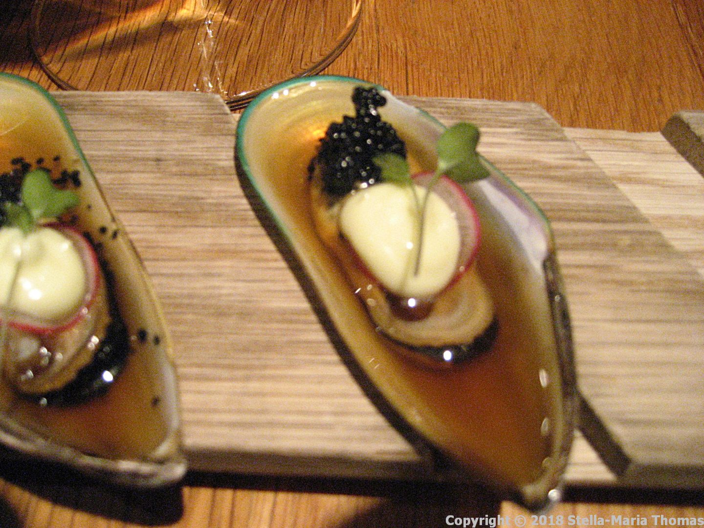 GAIJIN, MUSSEL ‘YUZU HONEY’ (GREEN SHELL MUSSEL, YUZU HONEY DRESSING, WASABI MAYONNAISE, SEAWEED CAVIAR) 006 Posted by Stella on 17/12/2018