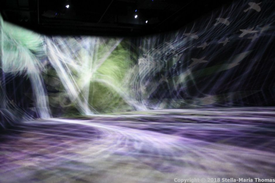 The first exhibition in this massive space is by the Japan-based art collective teamLab and is called “Massless“. The whole is divided into several areas, containing “immersive and interactive installations”. The first room we went into was labelled “Black Waves“ and I found it incredibly relaxing, almost hypnotic as waves crashed up and down the walls, swelling and then falling back again. I could have sat in there for quite some time and in fact we did.