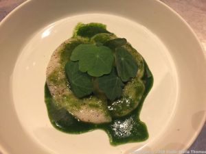 KODBYENS FISKBAR, SCALLOP, CUCUMBER, MILD HORSERADISH AND OYSTER LEAF 007 Posted by Stella on 07/02/2019