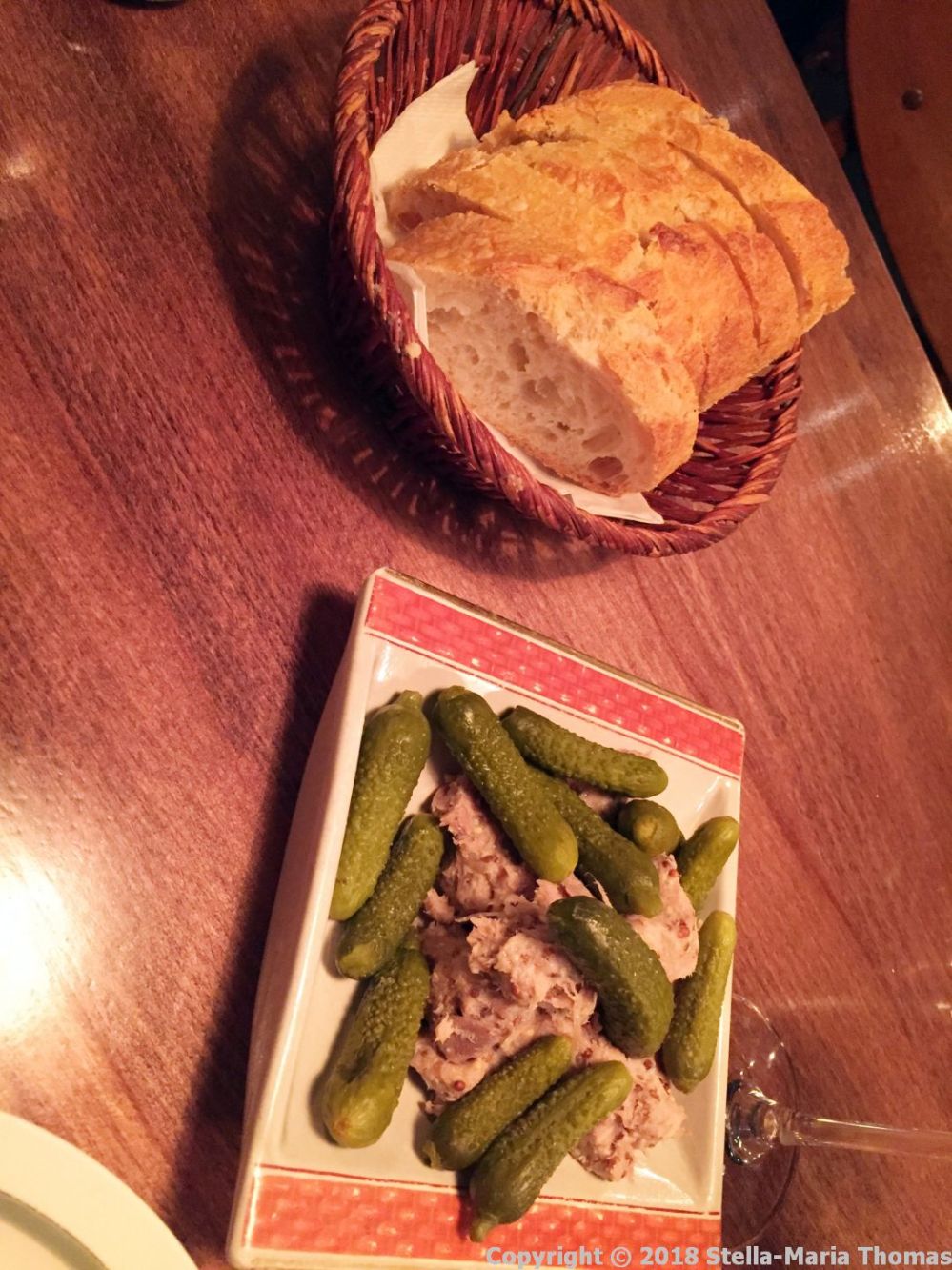 It was time to study the menu. The restaurant website claims that “We are not compromised by having to cook only French or Italian but can, as we don’t have any dogmas, let us inspire and travel (metaphorically speaking) all around the world.” That said, the menu had a distinctly south-western French feel to me, with duck, salt cod and truffles appearing in some profusion. Between that, and the spelling of the name, I was picking up the sort of vibes I get in Pau, though without the balmy temperatures given it was January and about -3°C (26.6°F) out there! It was much warmer in the restaurant thankfully. After some consideration I decided that actually there really isn’t any such thing as too much duck, and so I ordered a snack, a starter and a main, all containing the said avian speciality. A carafe of water arrived along with a container of bread crusty, white bread.