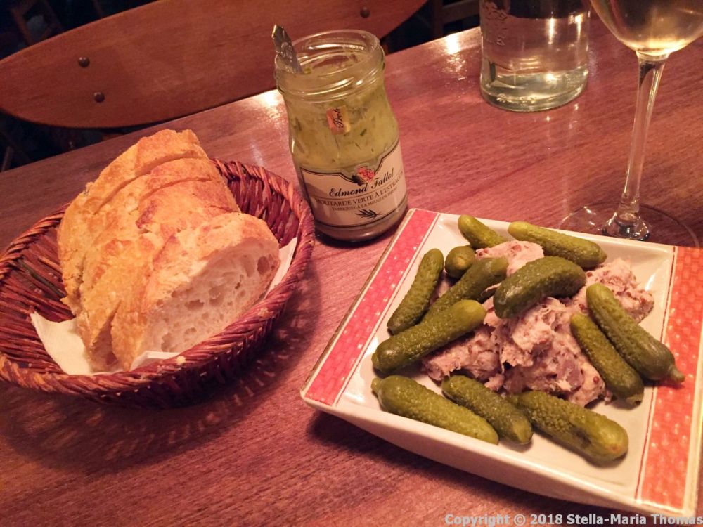 It was quickly joined by a sizeable plate of duck rillette, studded with mustard seeds, and piled with tiny cornichons. It was rich and fibrous, and delicious, and I ate a lot more of it than I needed (and also consequently a lot more bread than was good for me – but it was tasty and texture was perfect with the meaty treat), accompanied by the rather splendid tarragon mustard, which was sharp and herby and cut through the fattiness of the meat. I did only eat about half of the cornichons though, crunchy though they were.