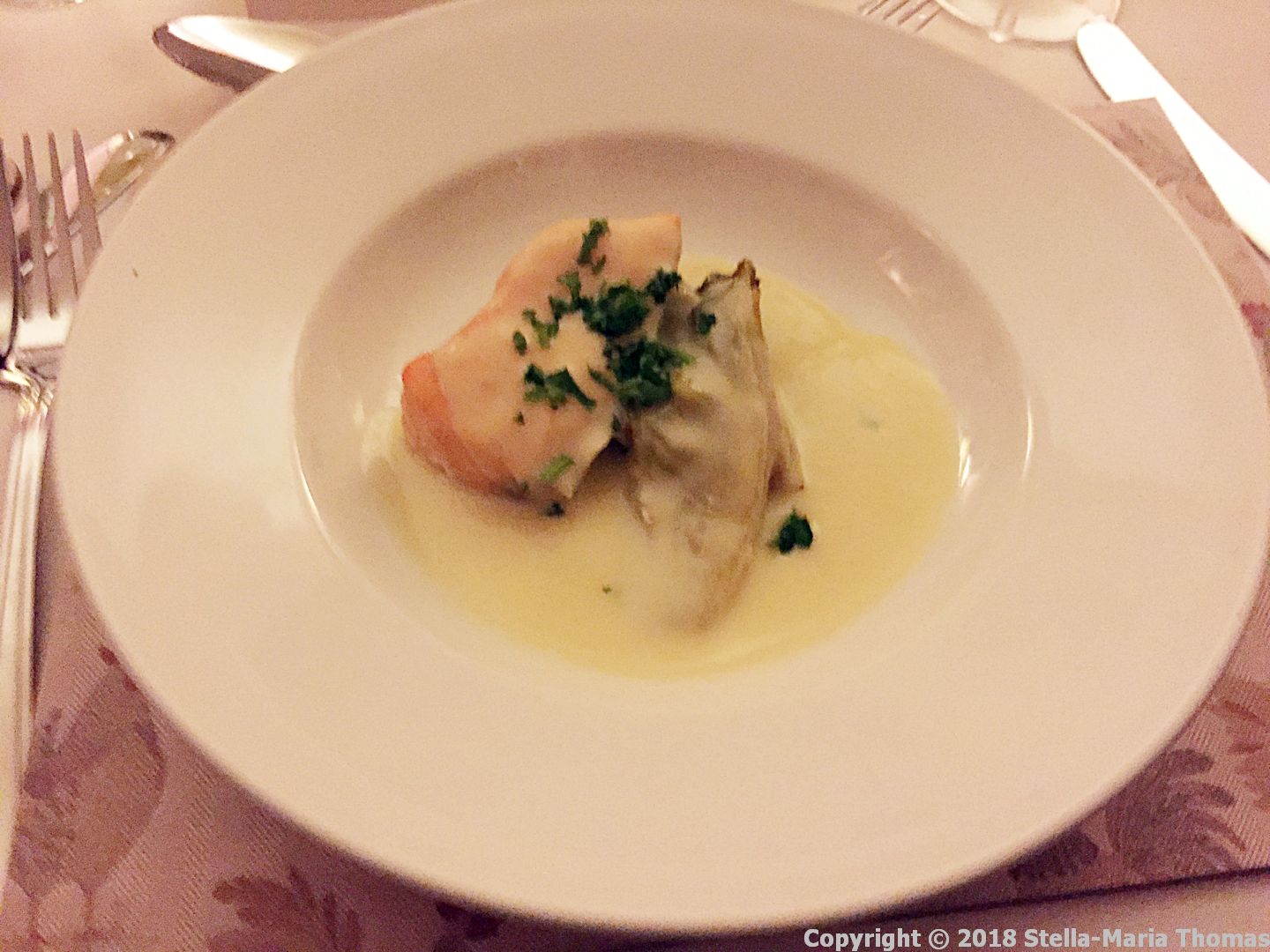 WESTON SUPPER CLUB, CONFIT SALMON, CHARRED LETTUCE AND OYSTER VICHYSSOISE 003 Posted by Stella on 12/02/2019