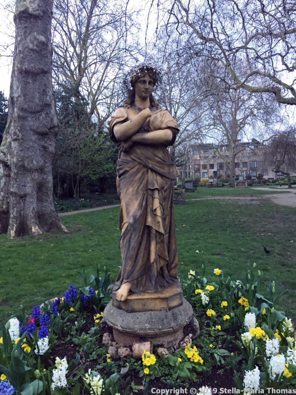 Slightly more explicable is the statue of Euterpe in one of the small parks along the way between the station and the office. Though I’m not sure who put the crown on her.