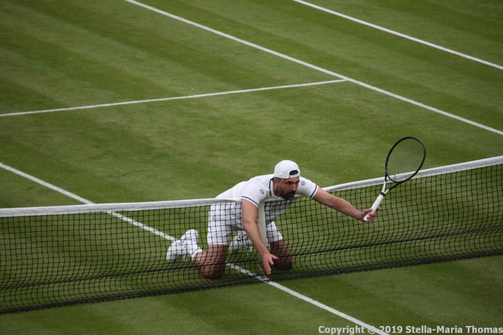 For good measure he also folded himself up on top of the net at one stage, and at another, having missed a shot that should have been easy, he handed his racquet to one of the ballboys, and retreated to take the ballboy’s position. The terrified lad played two points and then Goran decided he might have another go!
