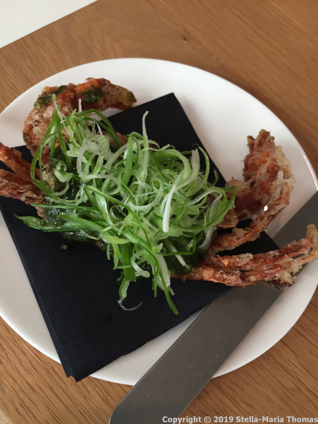HIDE, TEMPURA SOFTSHELL CRAB WITH MARIGOLD AND GREEN PEPPERCORNS 001