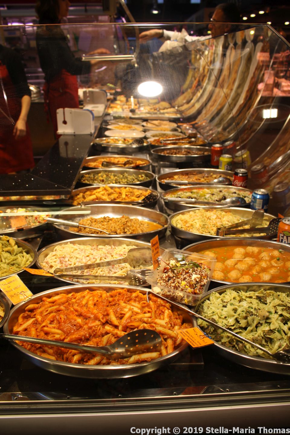 Shortly afterwards I found myself by the back door of what is Barcelona’s biggest food market, with 40,000 visitors a day, many of them tourists who apparently sometimes need to be reminded that they are in a working market where people have a living to make. The market itself has been around since 1217 or thereabouts, though the building it is now in is much more modern. apparently its name means “the place where goat is sold” from the word “boc” (“goat” in Catalan). I didn’t see any goat meat but I wasn’t specifically looking for it, and I’m pretty sure there must have been some somewhere. Actually, initially I wasn’t sure I was in the right place because it looked closed from the rear entrance, but once inside it was clear I was wrong!