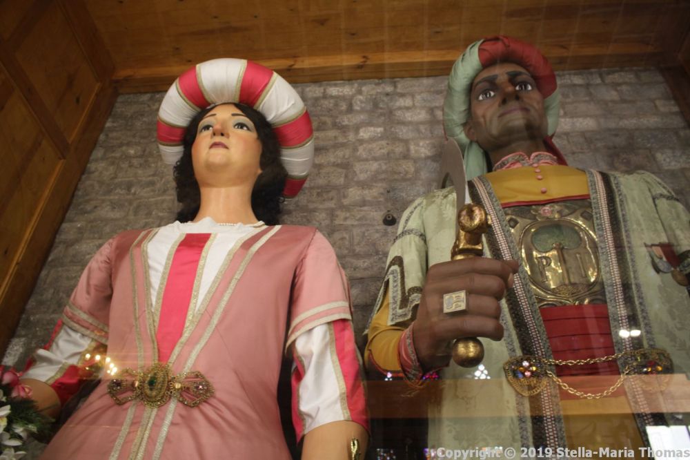 Also in the church is a large display case containing four “giant” papier maché figures which are paraded around during La Mercè, an annual festival in the city. I’m told it’s been happening since 1871, and began as a feast day for Our Lady of Mercy. Since 1902 these giants have been part of the celebration. It is a relatively recent thing, clearly, though there seems to be a suggestion that it dates back a lot further in other forms. Apparently in 1687 Barcelona suffered a plague of locusts, and the city asked the Virgin for assistance. When they believed it had worked, they adopted her as patroness of the city and an annual festival began. How reliable this information is, I can’t say for sure, but they are very impressive figures regardless of their origin.