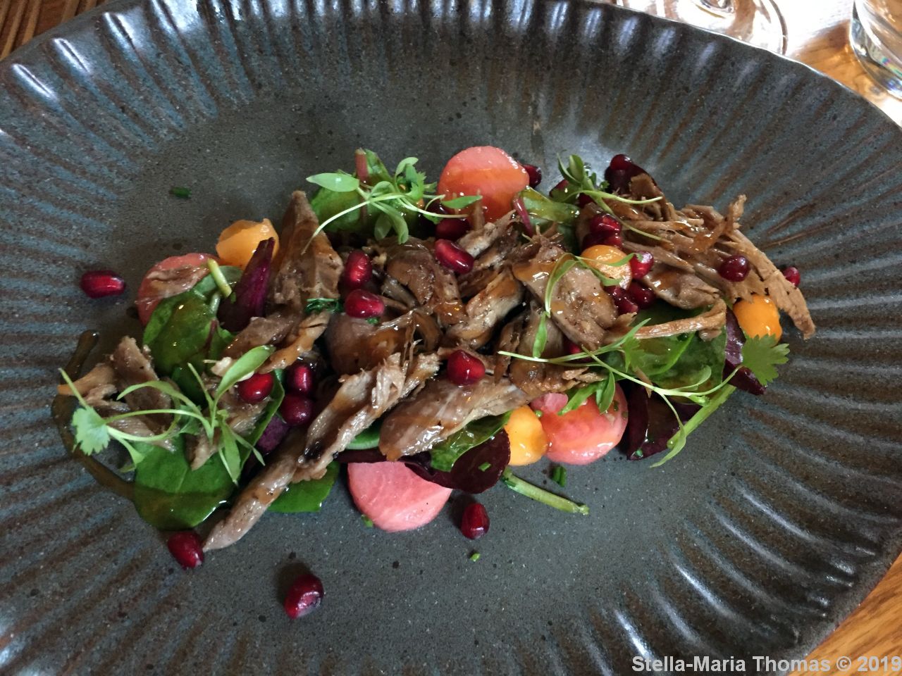 THE HOVINGHAM INN, ASIAN STYLE DUCK SALAD, WATERMELON, POMEGRANATE, MINT & LIME 022 Posted by Stella on 12/08/2019