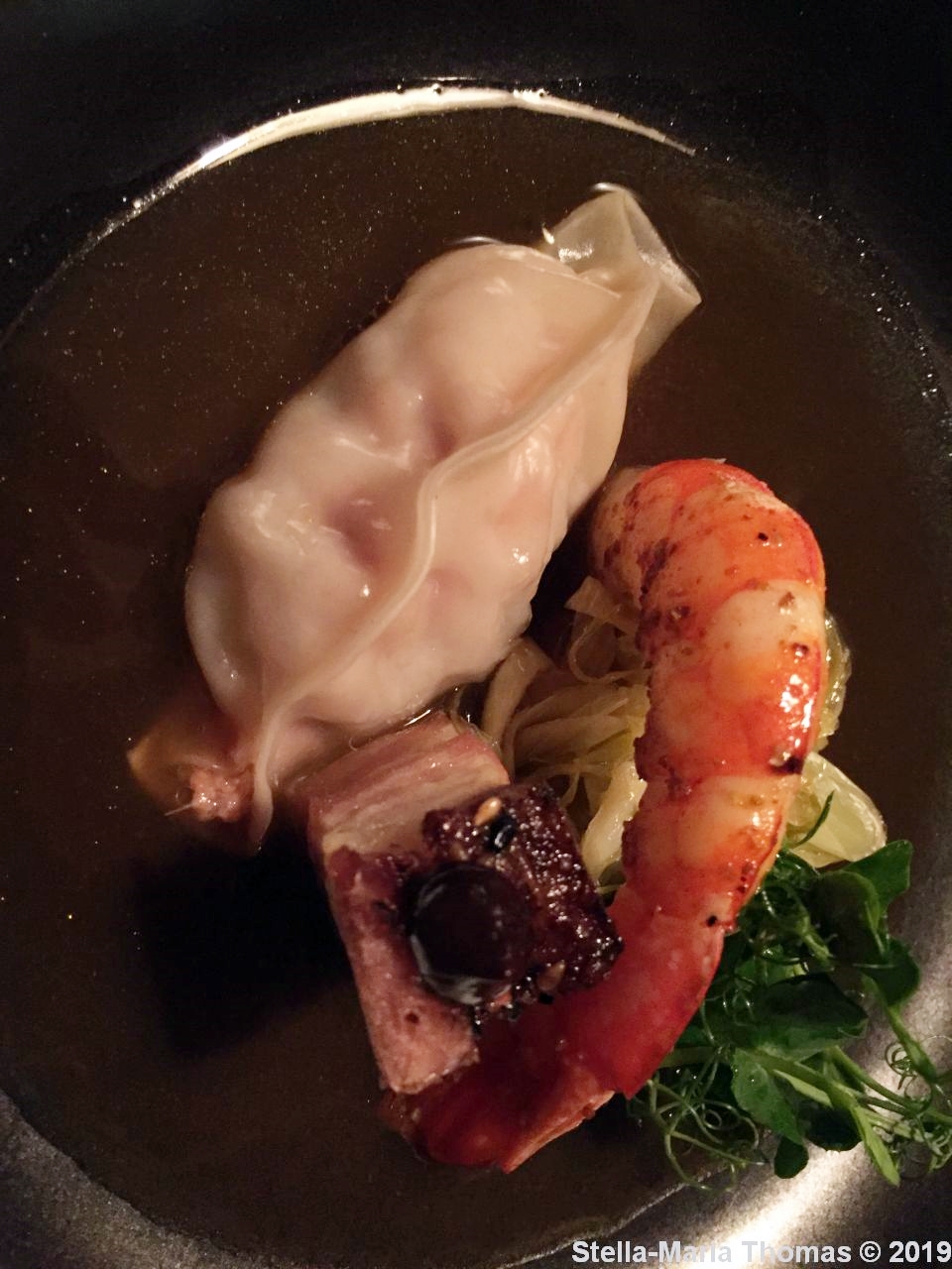 RABEN HORBEN, BERKSHIRE FERKEL, DIM SUM, RED PRAWN, DASHI, BLACK FOREST MISO 012 Posted by Stella on 17/10/2019