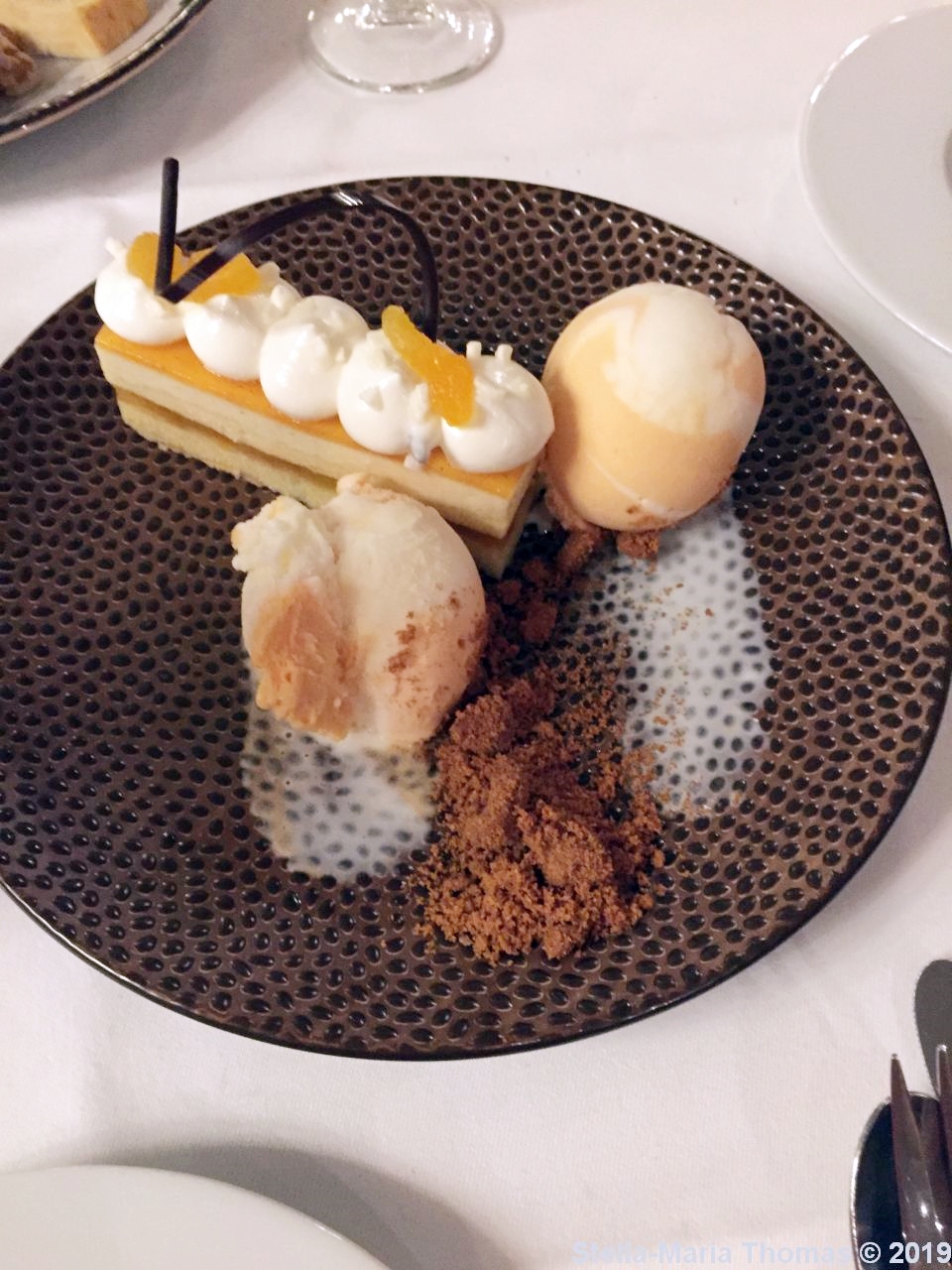 After refills of our wine glasses (they were not at all stingy with the wines) our main eventually arrived, a portion of loin of veal with a cauliflower and miso creme, green herb gnocchi and a balsamic vinegar sauce. I am definitely over my fear of veal these days. This was really very good, more steak like than anything else. The cauliflower and miso puree was rich and umami packed and I am so stealing that idea, and the gnocchi were light as a feather. It wasn’t the best meal of the holiday (that accolade goes to Raben) but thus far it was right up there.