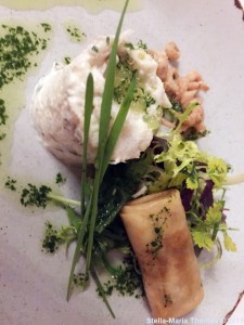 HOTEL KASTEEL BLOEMENDAL, RILLETTE OF COD WITH DUTCH SHRIMPS, SPRING ROLL WITH ORIENTAL VEGETABLES, SESAME CREAM 008 Posted by Stella on 18/10/2019