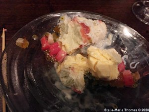 TRISHNA, SAFFRON POACHED PEAR CHEESECAKE (FENNEL AND PEAR JELLY, CARAMEL AND NUTS ICE CREAM) 015 Posted by Stella on 17/02/2020