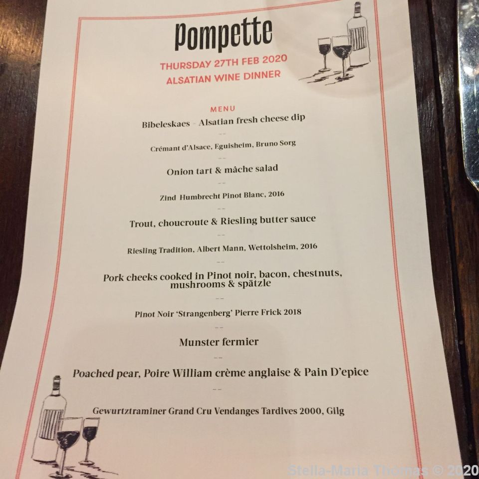 Thursday, 27th February 2020 – Pompette, Oxford, Alsatian Wine Dinner