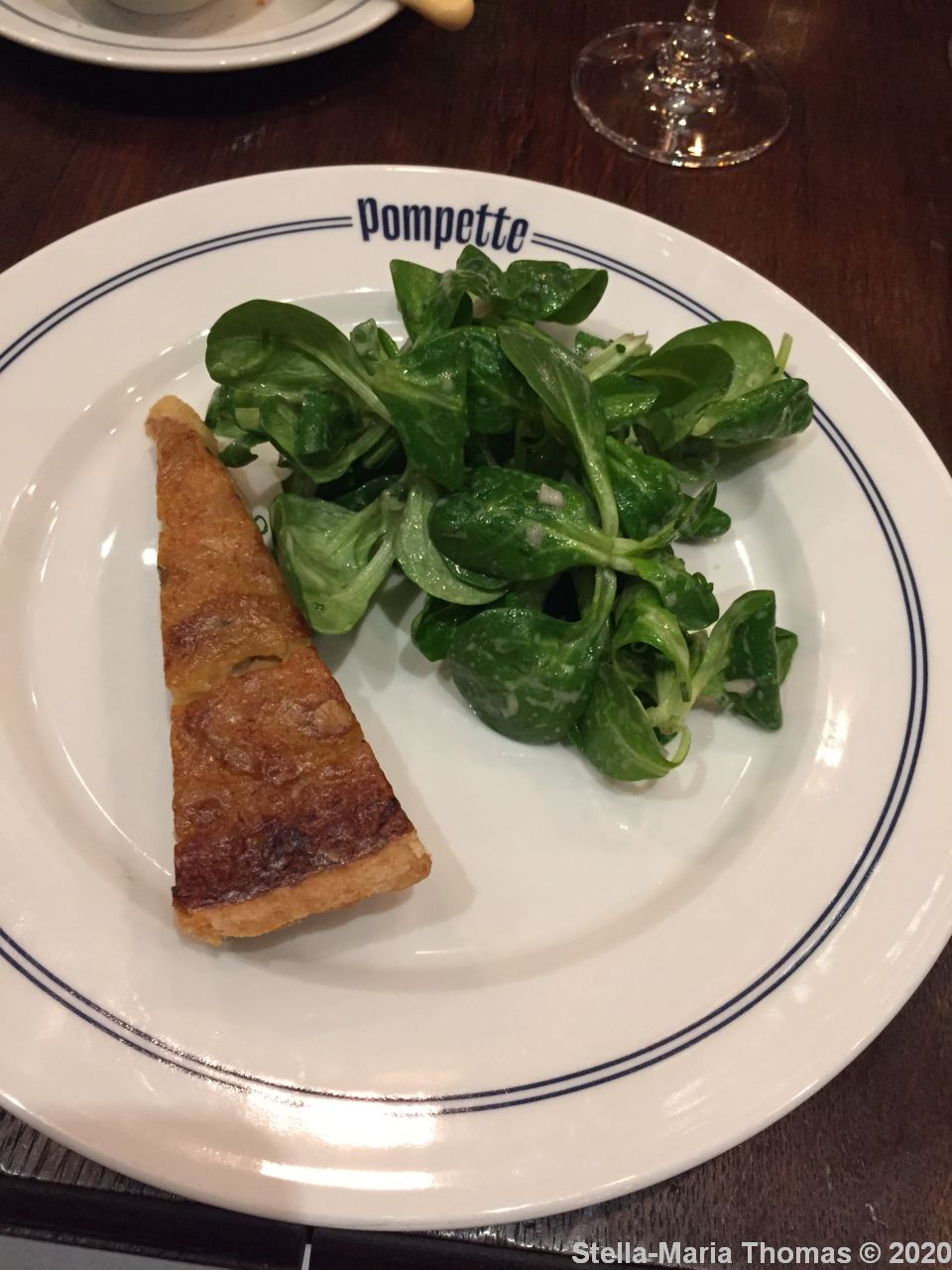 A refill of the crémant was much appreciated before we moved on to that classic dish of Alsace Lorraine, the quiche Lorraine. This was just listed as an onion tart, served with a mâche (or lambs lettuce if you’d rather) salad. The tart was excellent, with a good crisp pastry base, and a rich filling, with a golden and lightly crisp top, and it slipped down a treat. It was also reassuring to see that the portions were not too large, a problem when you know you have a fish and a meat course to come, and then cheese and dessert.