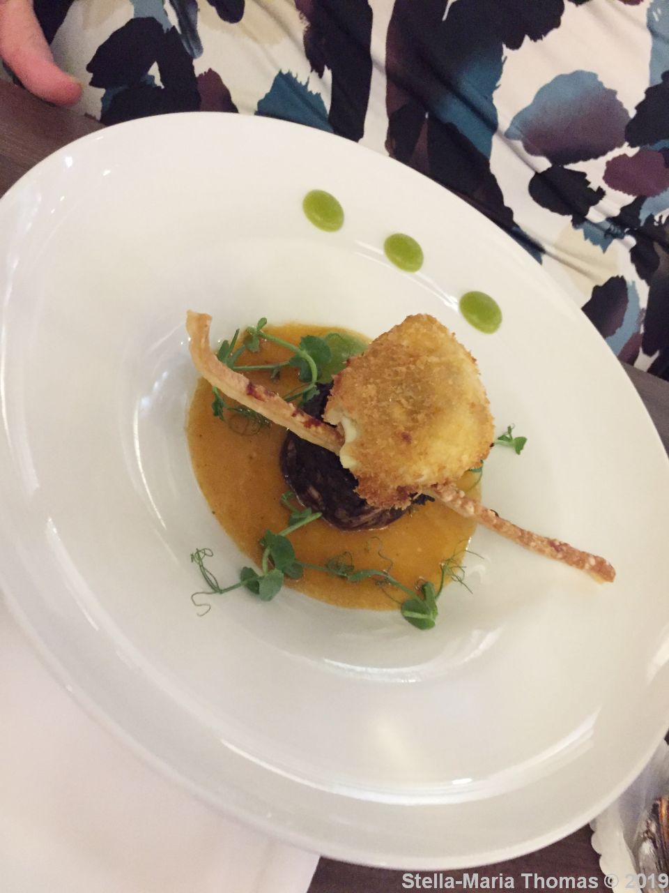 THE FOLLY, HASH (PULLED PORK AND BLACK PUDDING HASH, CRISPY PANKO BREADED EGG, CRACKLING, APPLE PUREE) 003 Posted by Stella on 30/06/2020