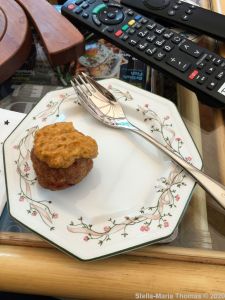 THE FOLLY, TASTING MENU, CHICKPEA AND RED PEPPER FRITTER, ROMESCO SAUCE 010 Posted by Stella on 30/06/2020