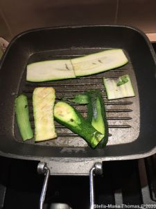 UNDER THE OLIVE TREE, GRIDDLED COURGETTE RIBBONS WITH FETA AND MINT LEMON DRESSING 016 Posted by Stella on 05/10/2020