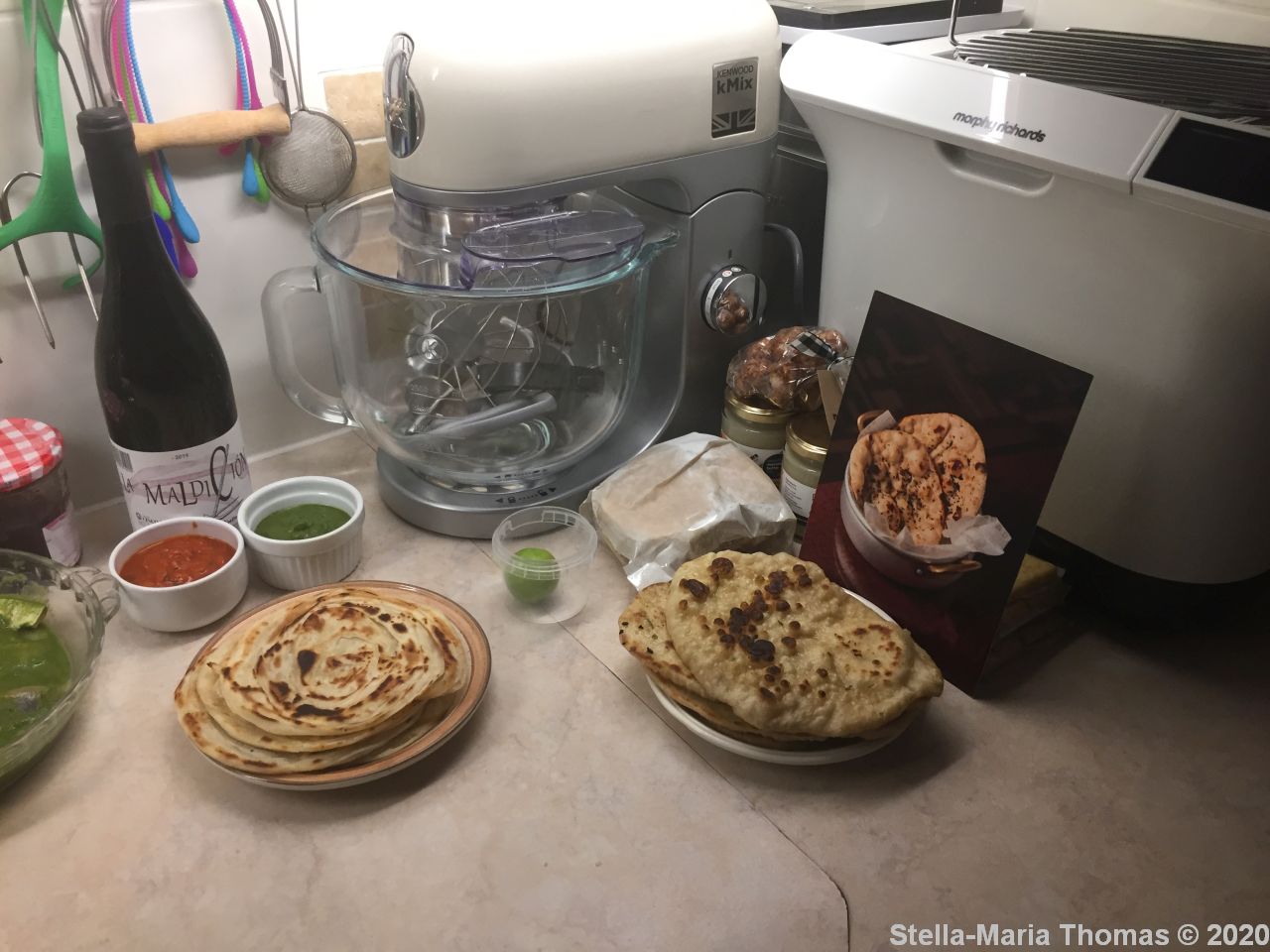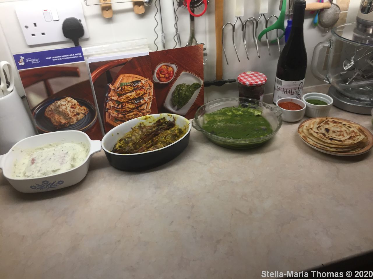 I rolled out and then cooked the naan, putting them to one side to reheat at the last minute, having learned from Masala the best way to do that, and I also prepared the parottas, a simple case of putting them into a hot dry frying pan for around 60 seconds a side. They too could be reheated.