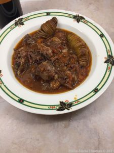 MOORISH, BRAISED OXTAIL WITH CHORIZO, RED WINE AND SOFFRITO, HASSELBACK POTATOES 004 Posted by Stella on 01/02/2021