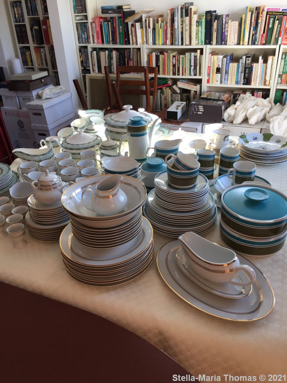 On Saturday we started digging into the boxes that said china. This was always going to be a journey of discovery, and so it proved. We established that we own five – yep, five – full dinner services, and a number of interestingly shaped special occasion plates that we bought from a favourite restaurant, Lipsius, in Jezus-Eik just outside Brussels, when it was closing down. €1 a piece was a bargain, except now when we’re trying to find places for all this stuff.