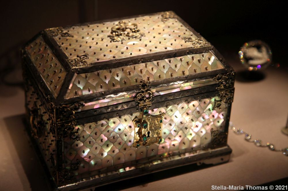 Once we’d done there, we were able to go upstairs and visit the new family treasury. It’s quite terrifyingly opulent, with all sorts of small items collected by the family over the years. I don’t think I’ve seen so much bling outside the Kaiserliche Schatzkammer in Vienna. There are more than 300 objects made from rare and precious materials stored in there ranging from “a 1st-century cameo of Augustus Caesar’s grandson, to a microscope used by entomologist and flea expert Charles Rothschild”. There is jewellery, gold boxes, silver, an amber casket made in the 17th century, a mounted nautilus shell, an 18th-century Mughal jade decanter, and the Nelme Cup, a unique gold standing cup made in England in 1727. It’s stunning and you step back into the outside world feeling as if you’re suffering retina burn from all the shininess.