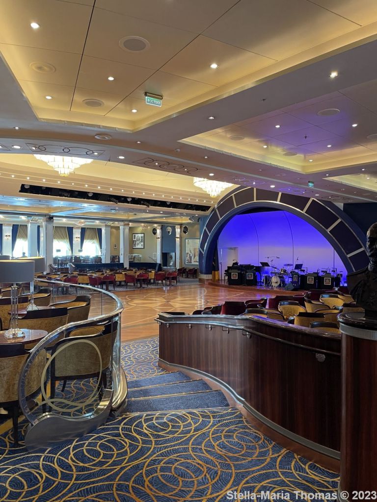 I also established where I could run (Deck 7 between 08:00 and 20:00 only please), and we sorted out which bar was which. The look of the ship harks back to the art deco splendour of her predecessor, now retired to Long Beach, as can be seen in the Queens Room. There’s a bit of scuffing here and there, inevitable given the number of passengers that must have passed through, but it is all genuinely lovely. We didn’t find the bookshop or the library, but that was fine, we had time.