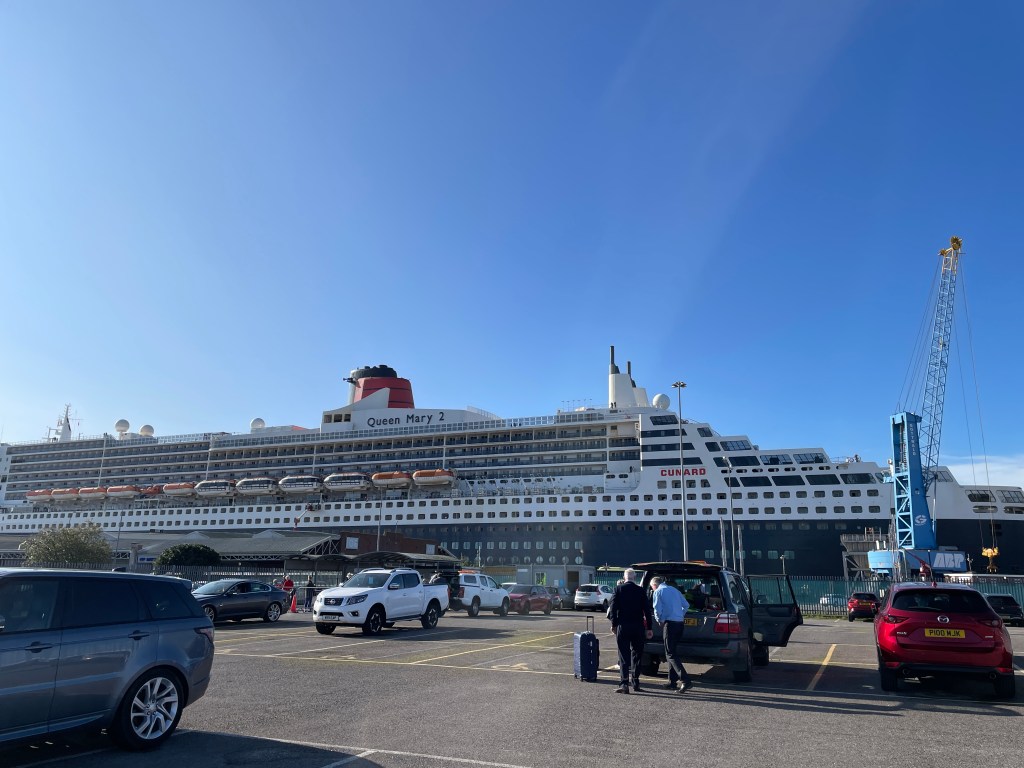 Once we’d escaped the contraflow mayhem, we had no trouble finding the car park for our particular trip. We’d booked, along with J and J, to travel with Cunard on the Queen Mary 2 from Southampton to Hamburg and back, a total of one stop in Hamburg and four nights on board. That, we figured, should be enough time to get a reasonable taste for life on board, without risking disappointment or similar, and we already knew Hamburg fairly well, so a short day trip would be fine. We’d got a check in time starting from 14:00 with a window of around two hours to get there, and were very pleased with the whole process. Compared to an airport check-in, this was an absolute breeze. A member of the car parking company’s staff met us, photographed the car, handed us a barcode and took the keys, and we crossed the road to the terminal building where lots of helpful people were on hand to point us in the right direction.