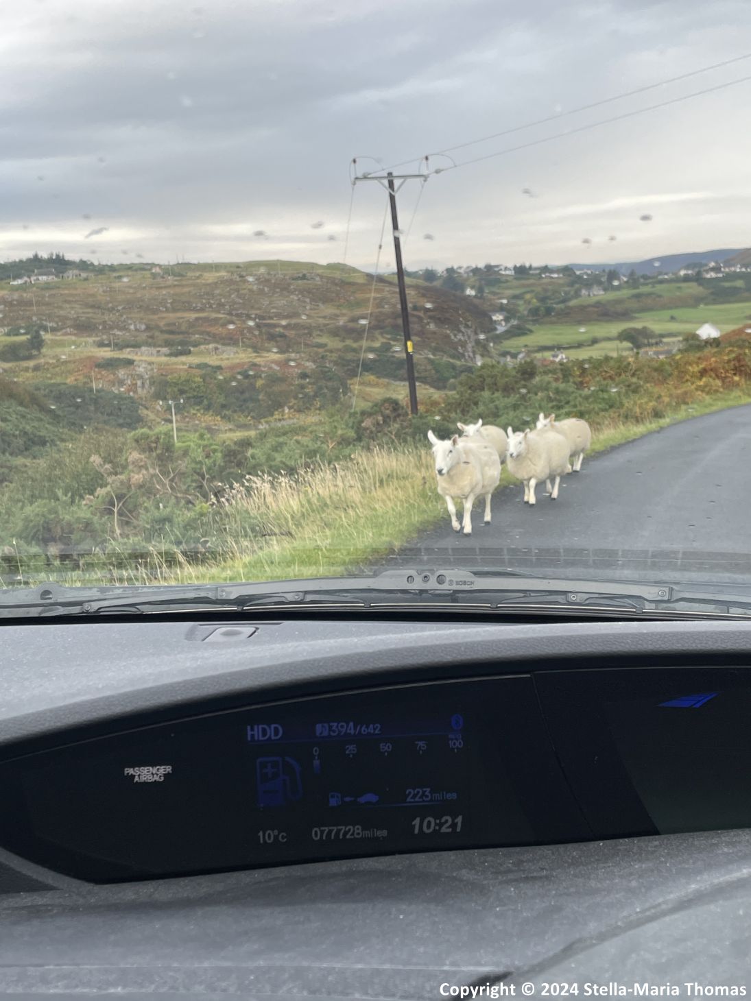 We would be covering a lot of mileage and and awful lot of scenery during the day, so we got away early, repacking the car between squally showers. The weather wasn’t looking good but we had no choice – we were booked to be elsewhere and so off we set. The landscape was becoming more dramatic now, and we were beginning to encounter the increasingly stroppy sheep that would be a feature of the second week of our trip.