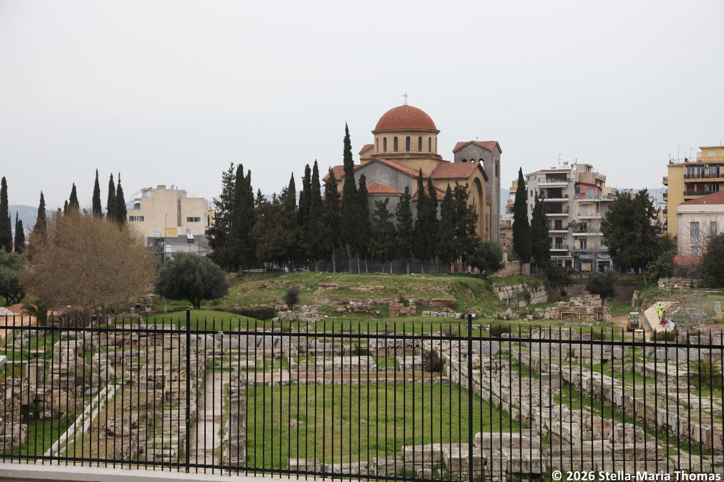 After a fairly late night, we still managed to drag ourselves awake early enough to get breakfast in the Club Intercontinental where we enjoyed the view over to the Acropolis, Phillipapos Hill, and Lycabetus Hill. The weather looked OK, perhaps a tad greyer than we might have wanted, but it didn’t look as if it was going to rain any time soon. We headed out, stopping off at the nearby tram stop to see if we could figure out how the system worked. To our surprise there was a machine that you could buy tickets from, it was working, and we managed to extract a pair of Ath.ena 5-day cards. These are an absolute god-send, because for a mere 8.50 you get to use all the buses except the express service to the airport, and all of the metro, tram and trolleybus lines for 5 days, so less than 2.00 a day to be able to swan around the city as much as you need. There are people who will tell you that the only people who pay for public transport in Athens are tourists, but I seriously doubt that, given you have barriers on entry and exit to the Metro, there’s a 60-fold fine for anyone caught riding without having paid a fare, and we saw a lot of enforcement going on during our time in Athens.