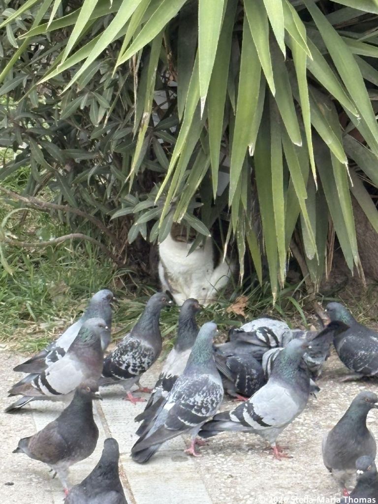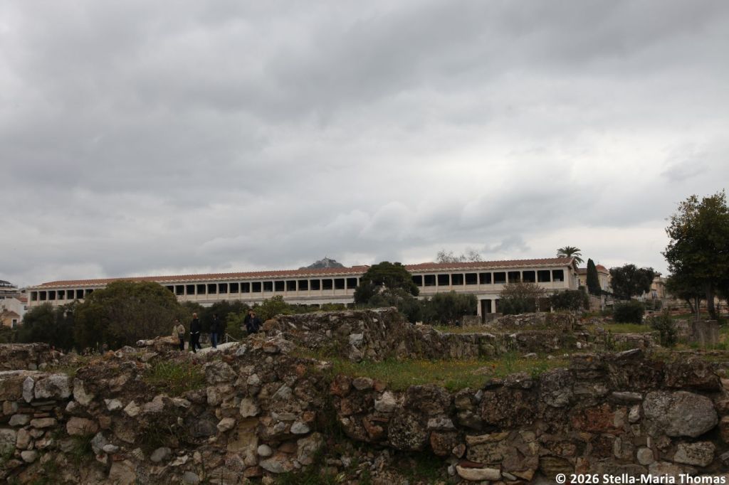 The Museum of the Ancient Agora is housed in the Stoa of Attalos, and is all about Athenian democracy. I’m sure it would have been well worth going in, but by now we really were running out of time. We needed to get to the hotel and Lynne gets anxious if we’re not sufficiently early for her liking. We would have to leave it, instead walking back to the metro and being entertained by the pigeons that were hanging about in dangerously close proximity to some of the cats, apparently with intent to steal any of the felines’ food that didn’t get eaten quickly enough.