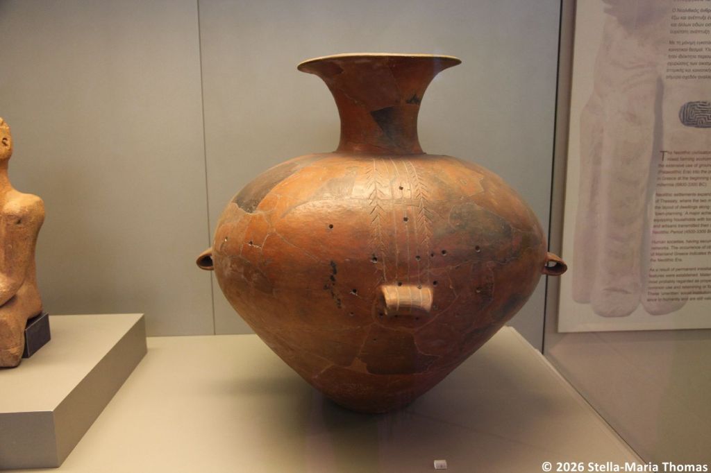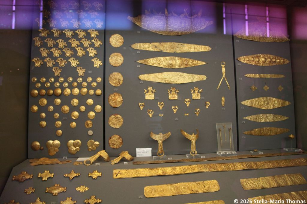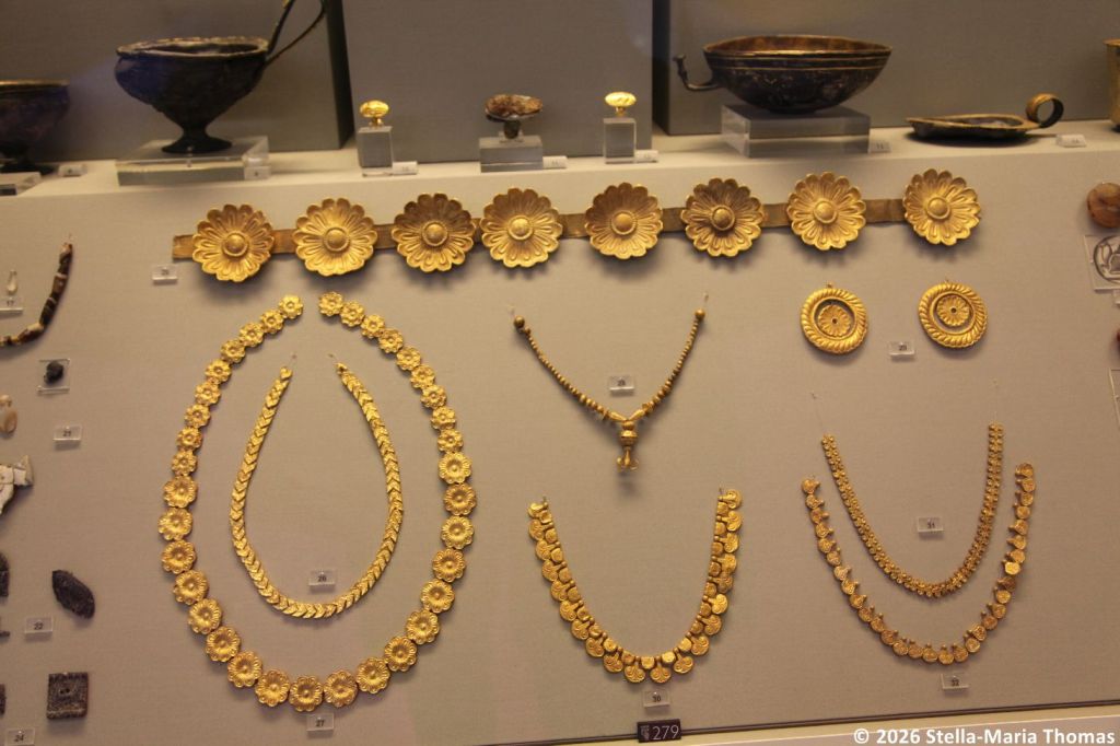 It starts with their Prehistoric Collection, which shows artefacts from the major civilisations of the Aegean, ranging from the 7th millennium to around 1050 BCE. The first rooms cover the Neolithic (6800-3300 BCE), Early Cycladic (3200 – 2000 BCE), Middle Cycladic (2000-1600 BCE), and Late Cycladic periods (1600 – 1100 BCE) with items from mainland Greece, the Aegean islands, and Troy. And once you’ve got to grips with that, you go into several rooms of the most spectacular treasures from the royal tombs of Mycenae (1600-1100 BCE). It’s very, very shiny in there! There are also Linear B tablets, Cycladic marble figurines, and wall paintings from Thera, all with very good placards to give you context and, if you want it, an audio guide too.