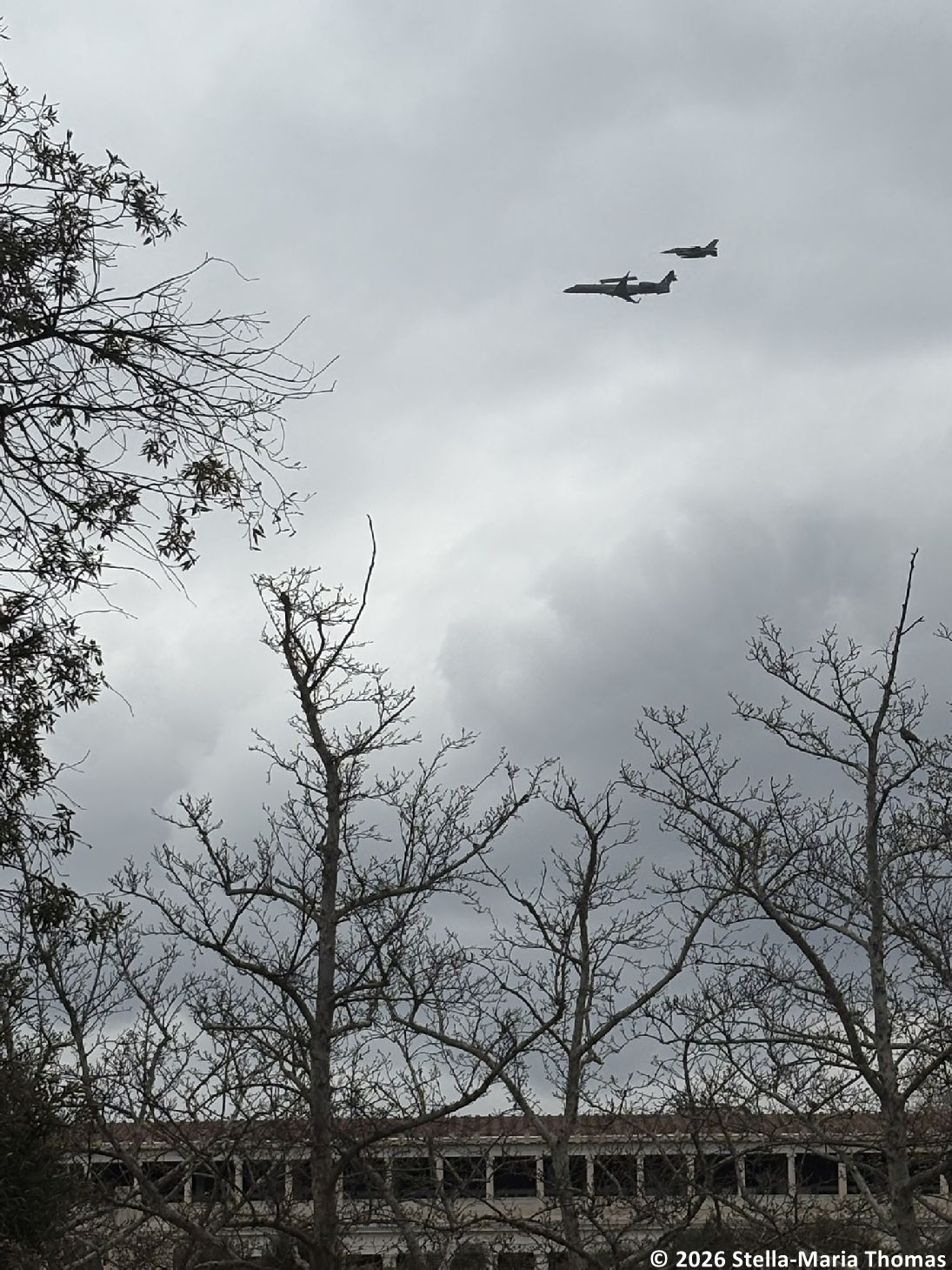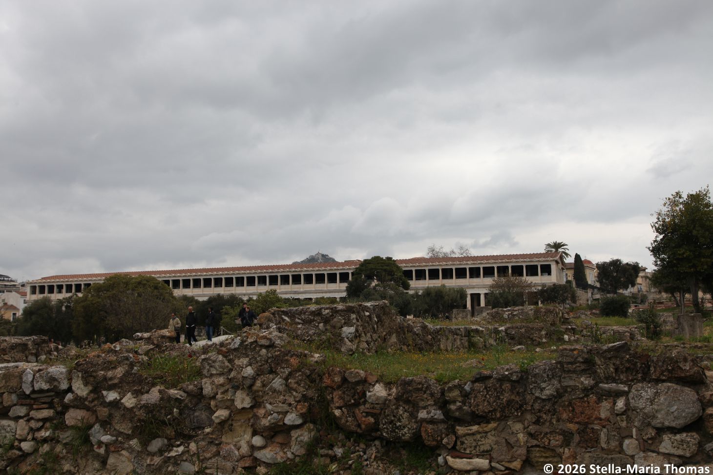 We popped up out of the metro at Thissio and walked to the entrance to the Ancient Agora, where we encountered another queue – it was starting to look like Fridays can be on the busy side in the off season. Eventually we managed to buy tickets and joined the trickle of people making their way towards the main area of the site. Like the Acropolis, which is more than just the Parthenon, the Agora also contains considerably more than you might initially expect. It was also being repeatedly overflown by a selection of aircraft ranging from the highly sophisticated to the vintage. I’m still not sure what was going on, but the planes included an F-16, an EMB-145 electronic reconnaissance aircraft, a C-130 transporter plane, and a Canadian-built water bomber. Apparently the Greek Air Force operates all of these machines.