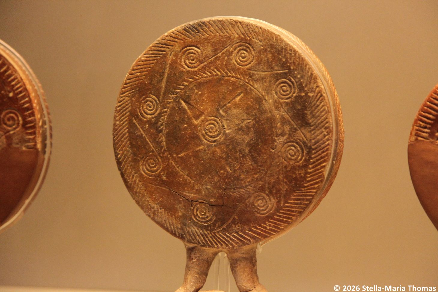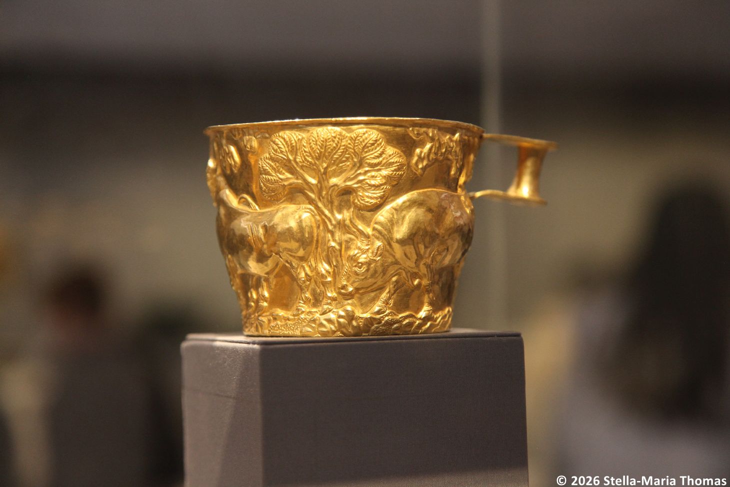 It starts with their Prehistoric Collection, which shows artefacts from the major civilisations of the Aegean, ranging from the 7th millennium to around 1050 BCE. The first rooms cover the Neolithic (6800-3300 BCE), Early Cycladic (3200 – 2000 BCE), Middle Cycladic (2000-1600 BCE), and Late Cycladic periods (1600 – 1100 BCE) with items from mainland Greece, the Aegean islands, and Troy. And once you’ve got to grips with that, you go into several rooms of the most spectacular treasures from the royal tombs of Mycenae (1600-1100 BCE). It’s very, very shiny in there! There are also Linear B tablets, Cycladic marble figurines, and wall paintings from Thera, all with very good placards to give you context and, if you want it, an audio guide too.